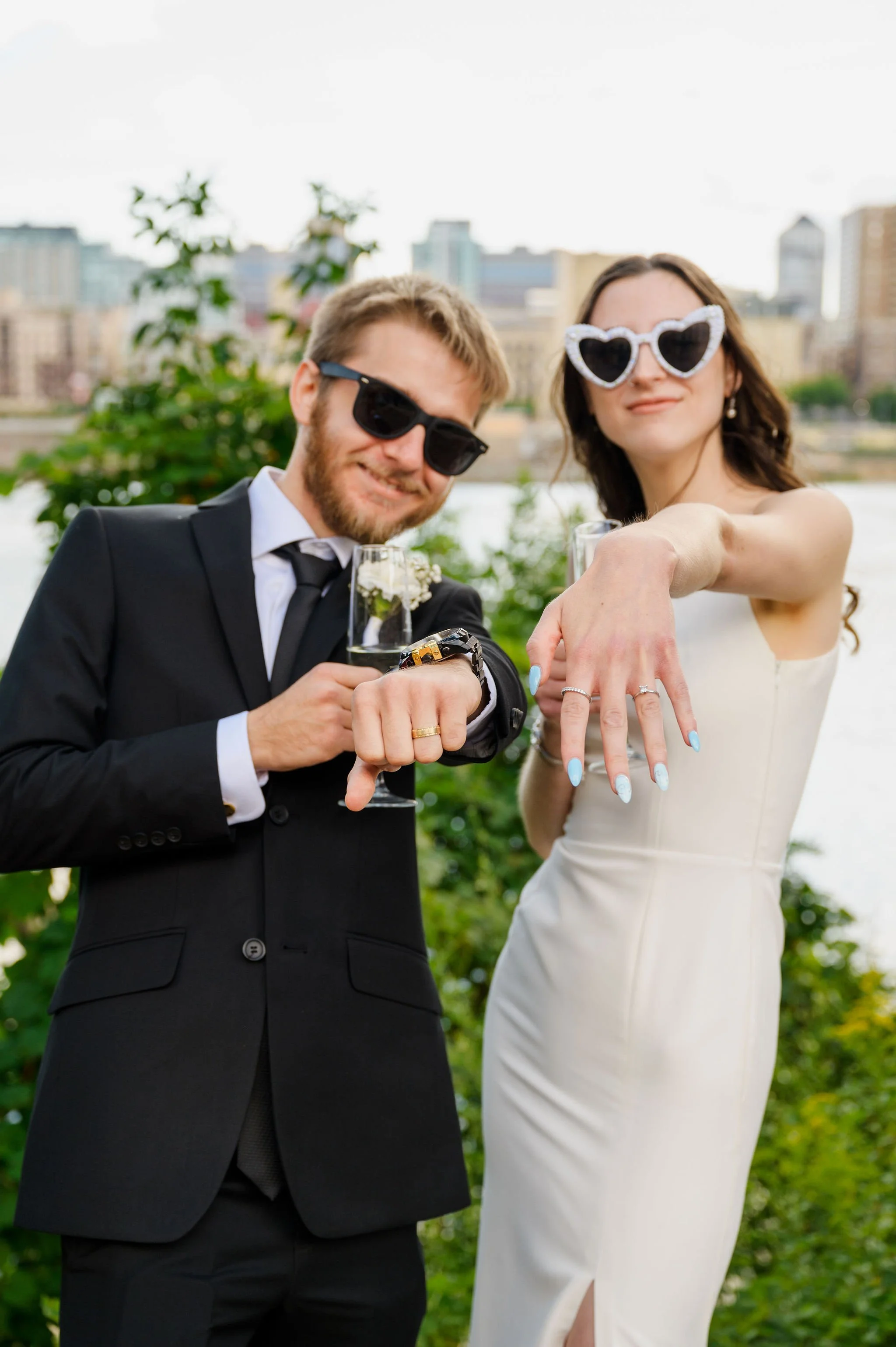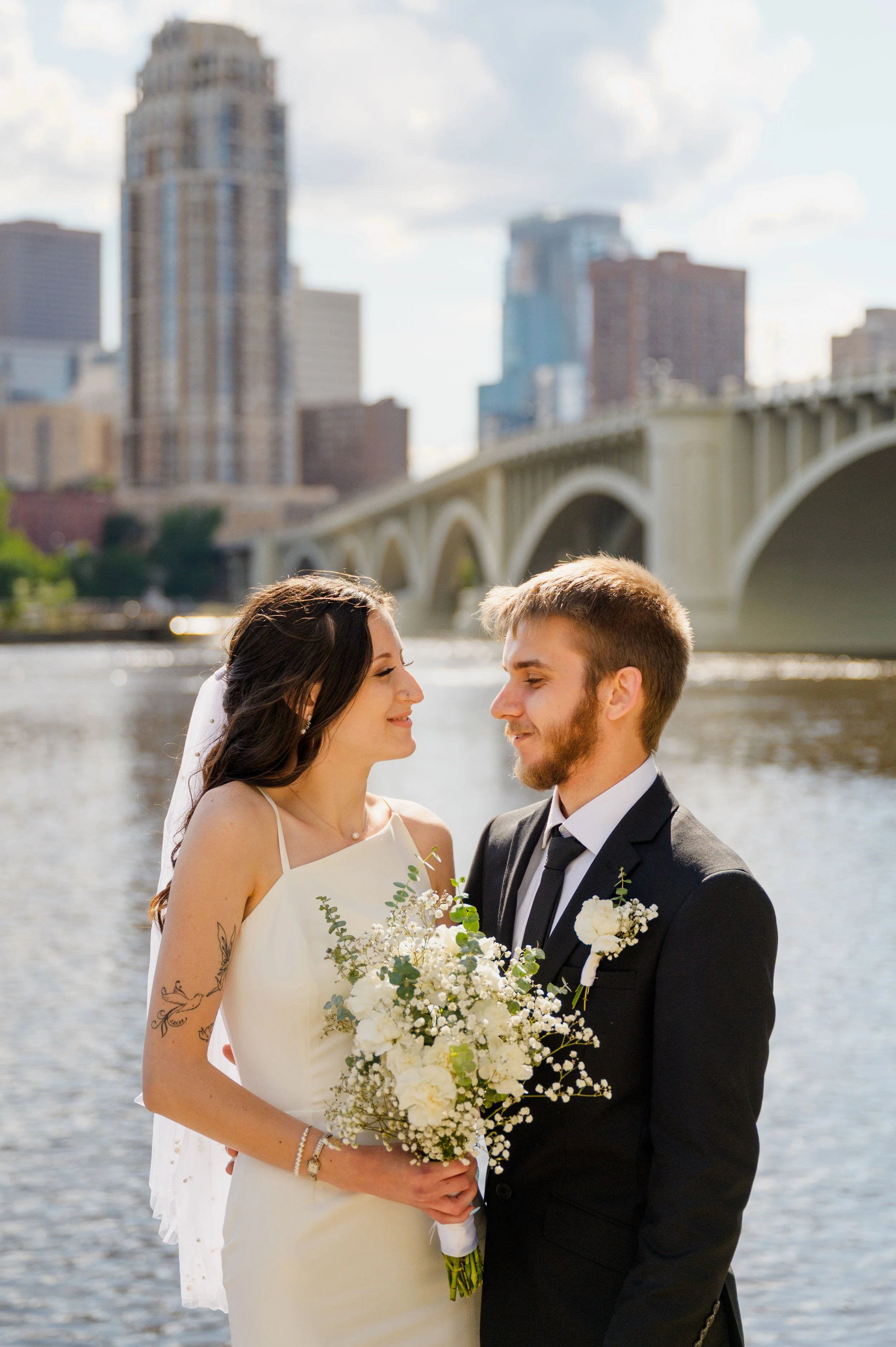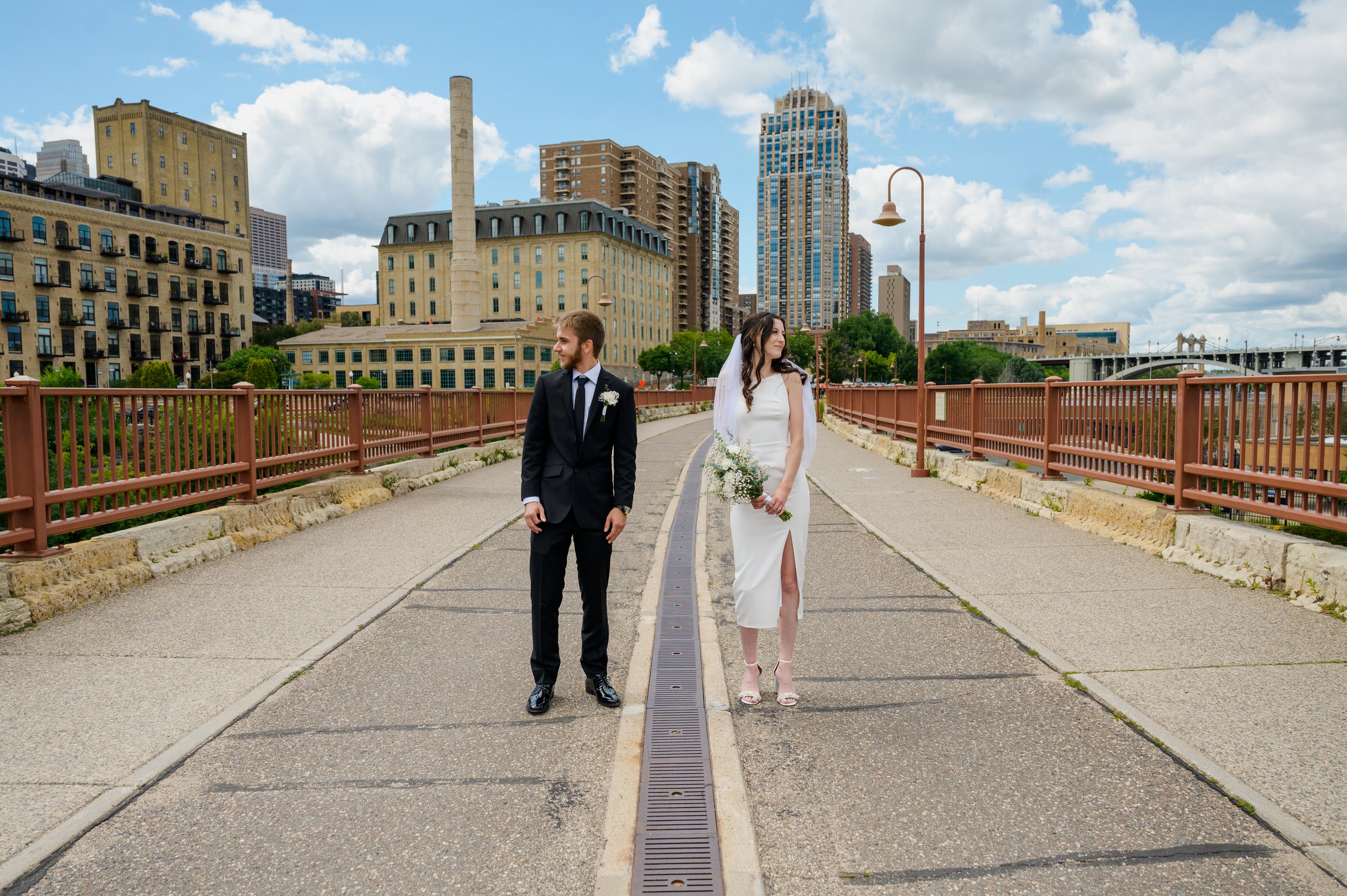 It was honestly a miracle we were able to stop at all the spots we discussed prior because there was a football event going on at the same time, which made parking quite the task. If you’re planning on eloping or getting married in the cities, be sure to give yourself plenty of cushion time when traveling in between locations, and make a shot list to ensure you make the most of your time at each spot. Even when there aren’t any big events happening in the cities, parking can be challenging. Especially around those iconic photo spots (for good reason!)