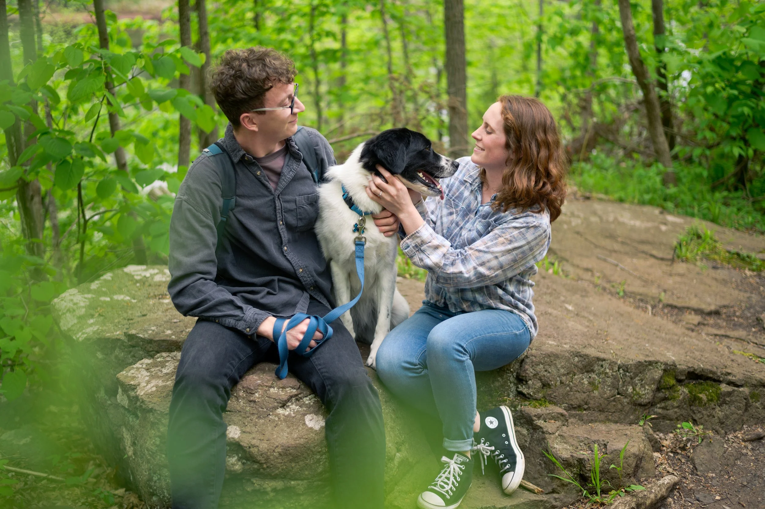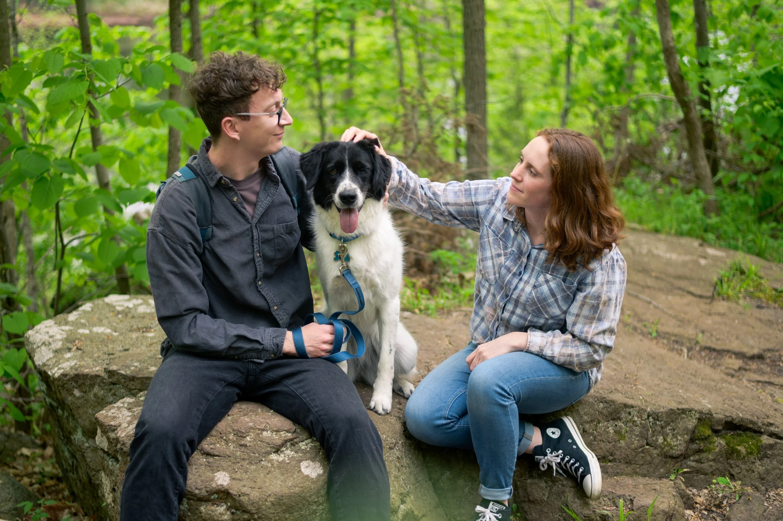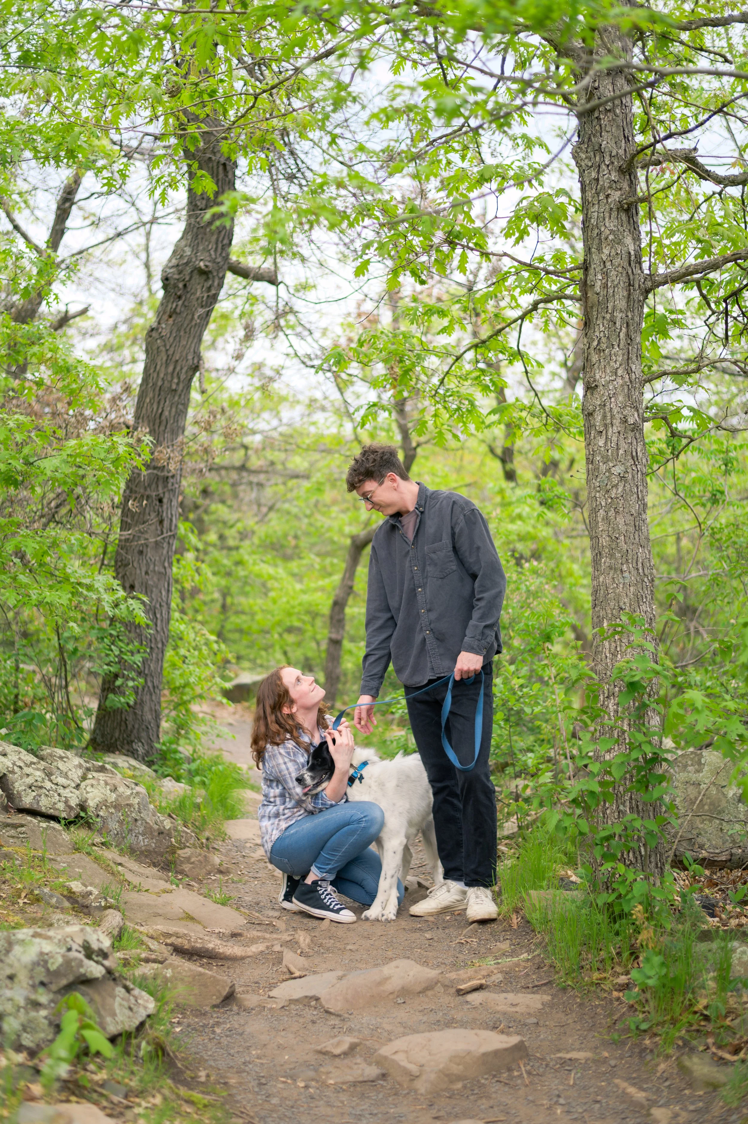 Also joining us was their pup, which is always fun, but can present some unique challenges. Ideally, I recommend bringing someone else along that can help handle the dog throughout the session, or bringing your dog along for the first half of the session and having someone bring them home so you can wholly focus on the session. I didn’t suggest that for this session, and since it was the first time a couple has brought their dog along, it was a learning moment for me. I recommend bringing some treats for your pup too! An enticing treat is hard to ignore and makes getting them to pose beside you much easier.