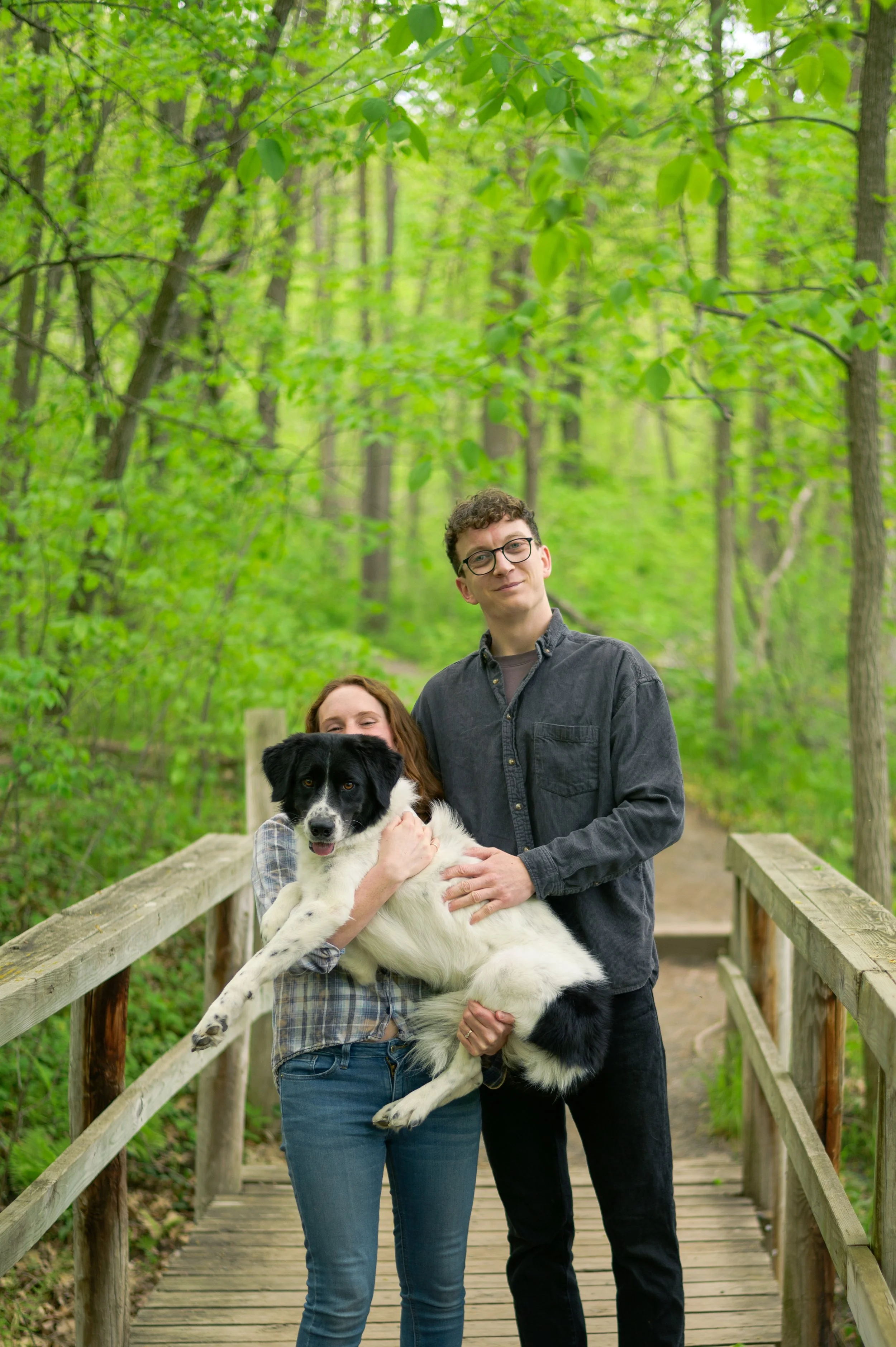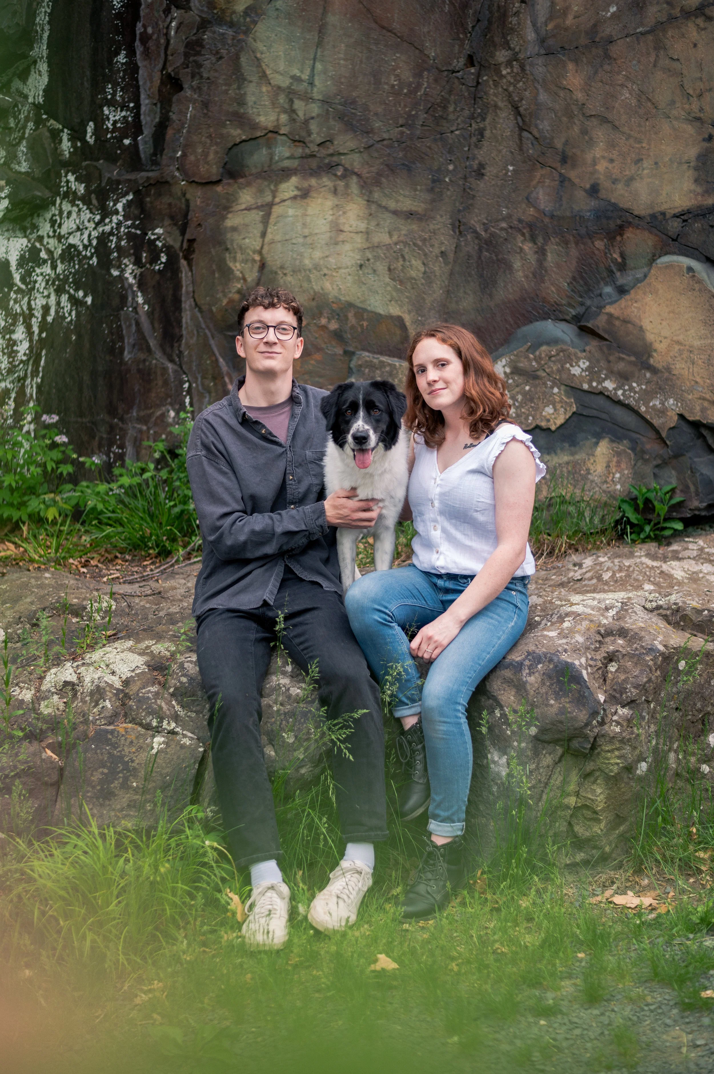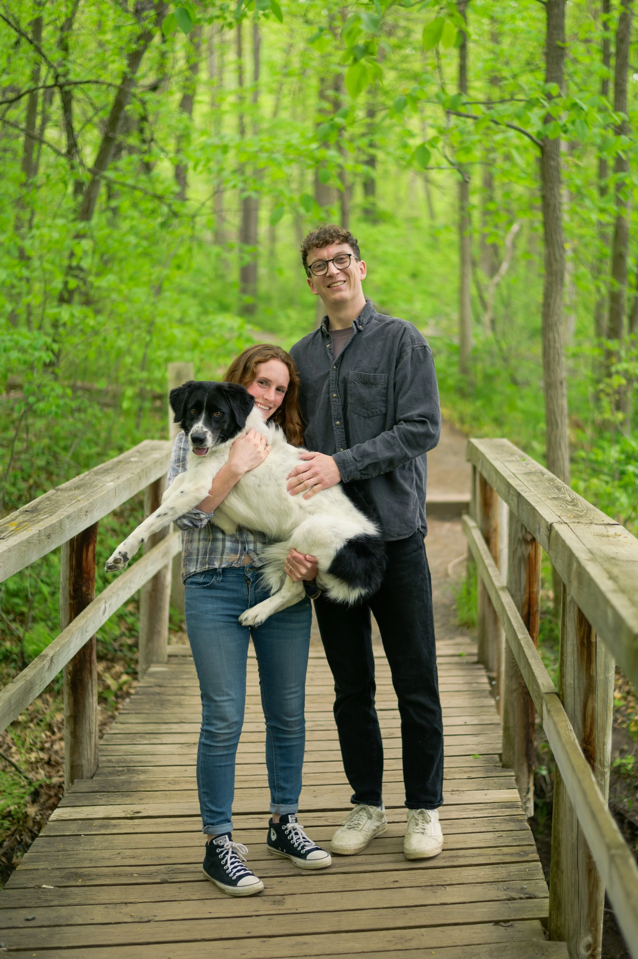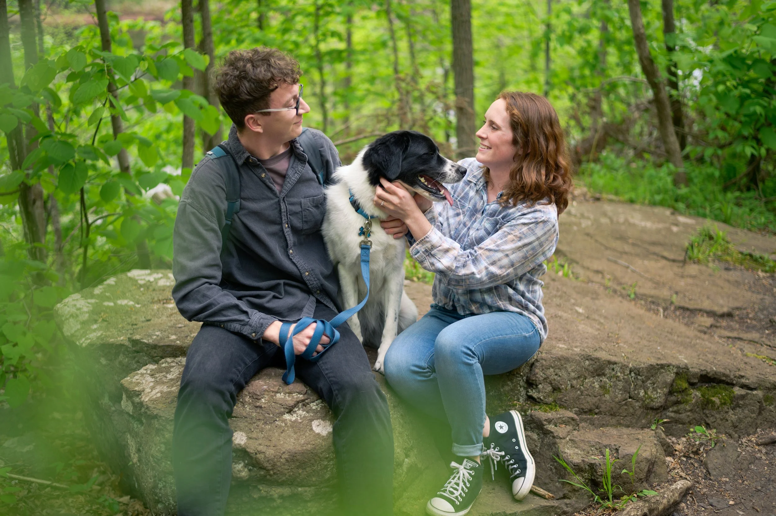 Also joining us was their pup, which is always fun, but can present some unique challenges. Ideally, I recommend bringing someone else along that can help handle the dog throughout the session, or bringing your dog along for the first half of the session and having someone bring them home so you can wholly focus on the session. I didn’t suggest that for this session, and since it was the first time a couple has brought their dog along, it was a learning moment for me. I recommend bringing some treats for your pup too! An enticing treat is hard to ignore and makes getting them to pose beside you much easier.