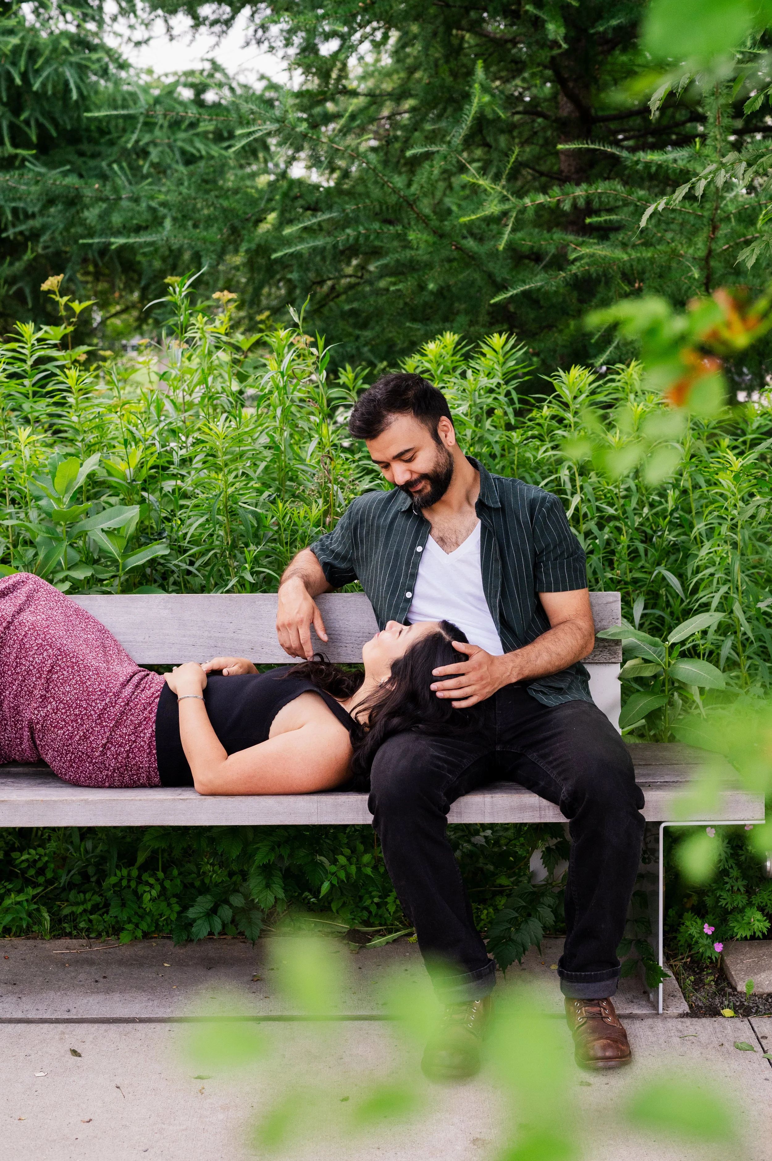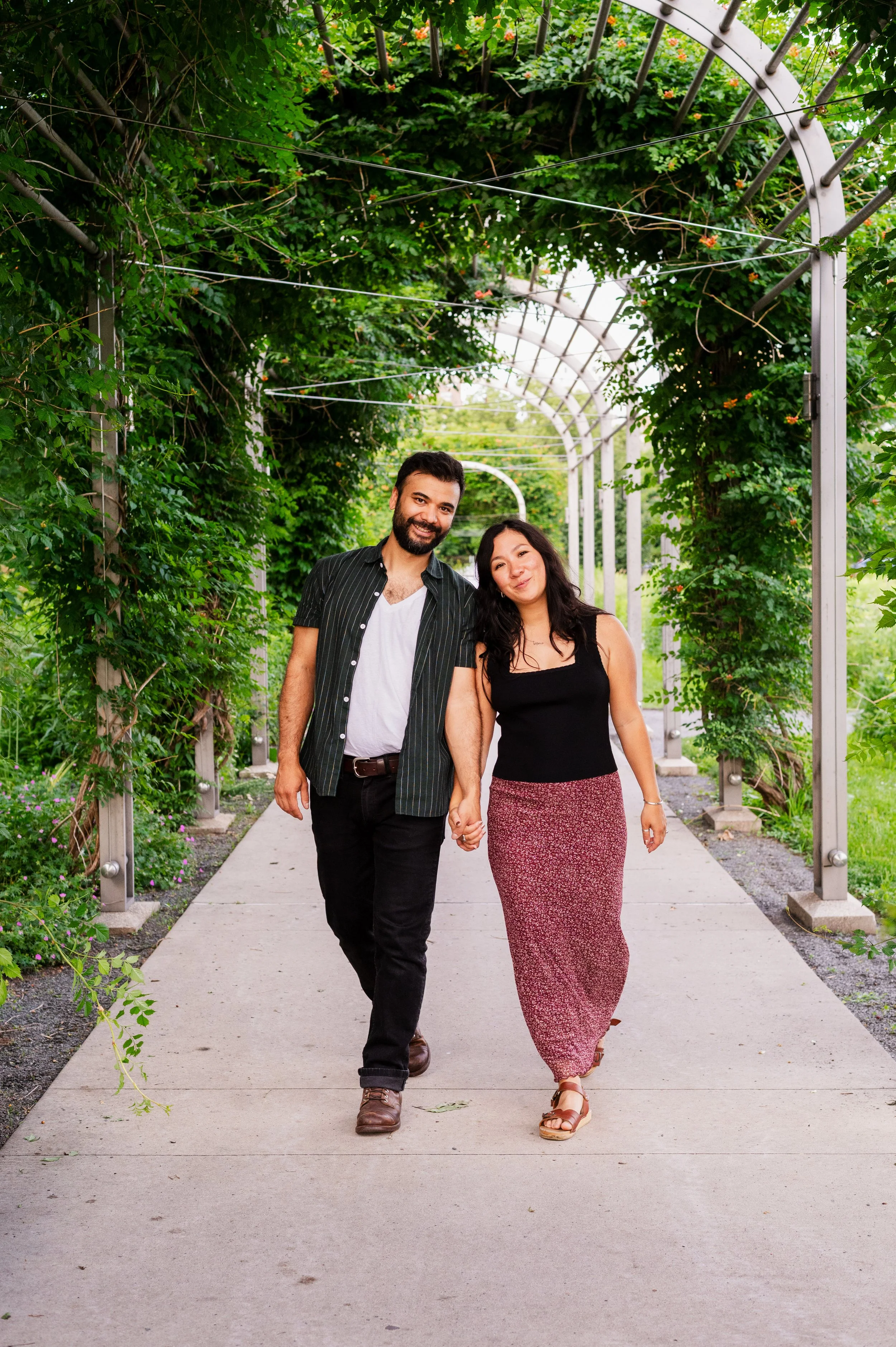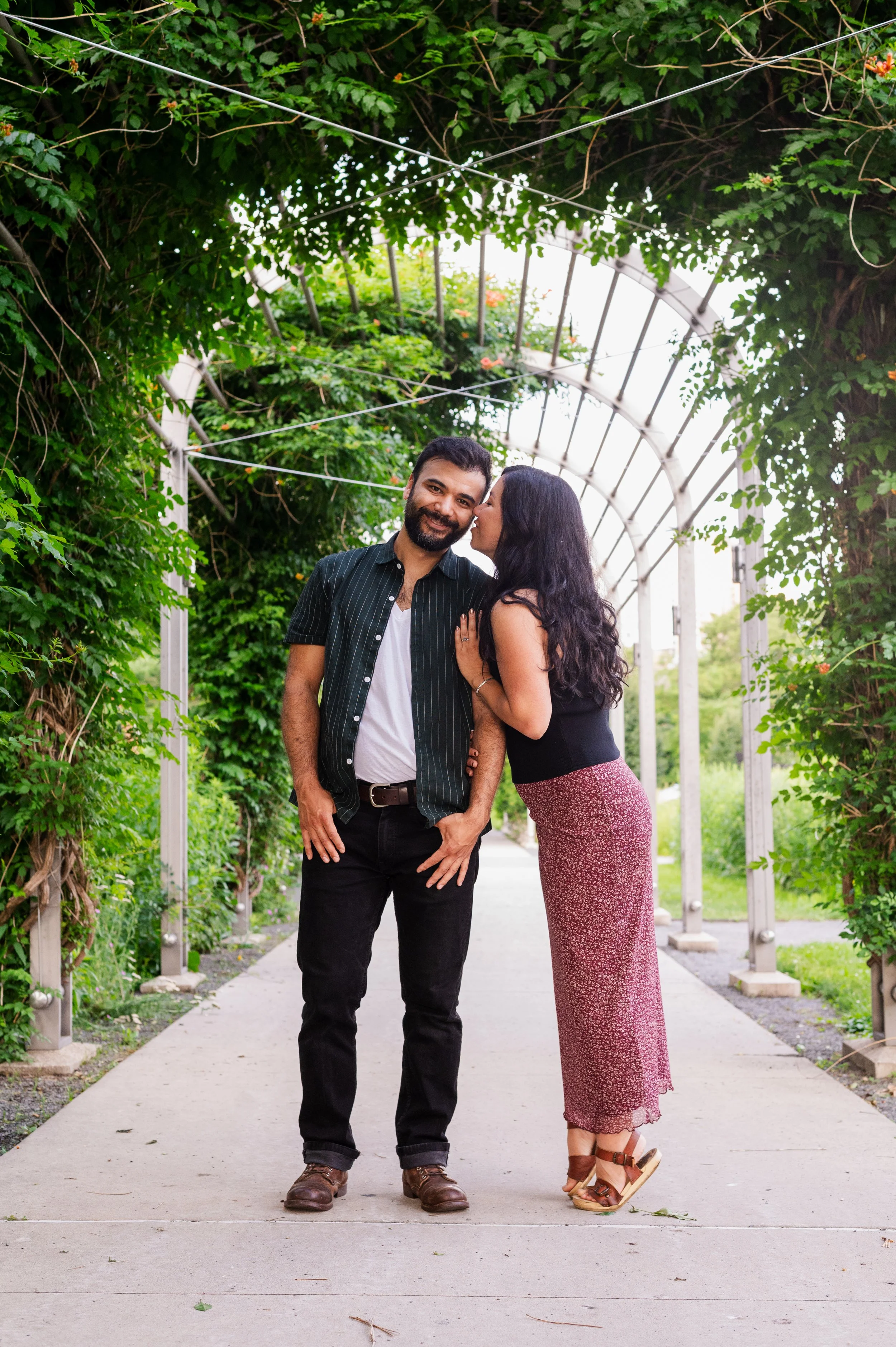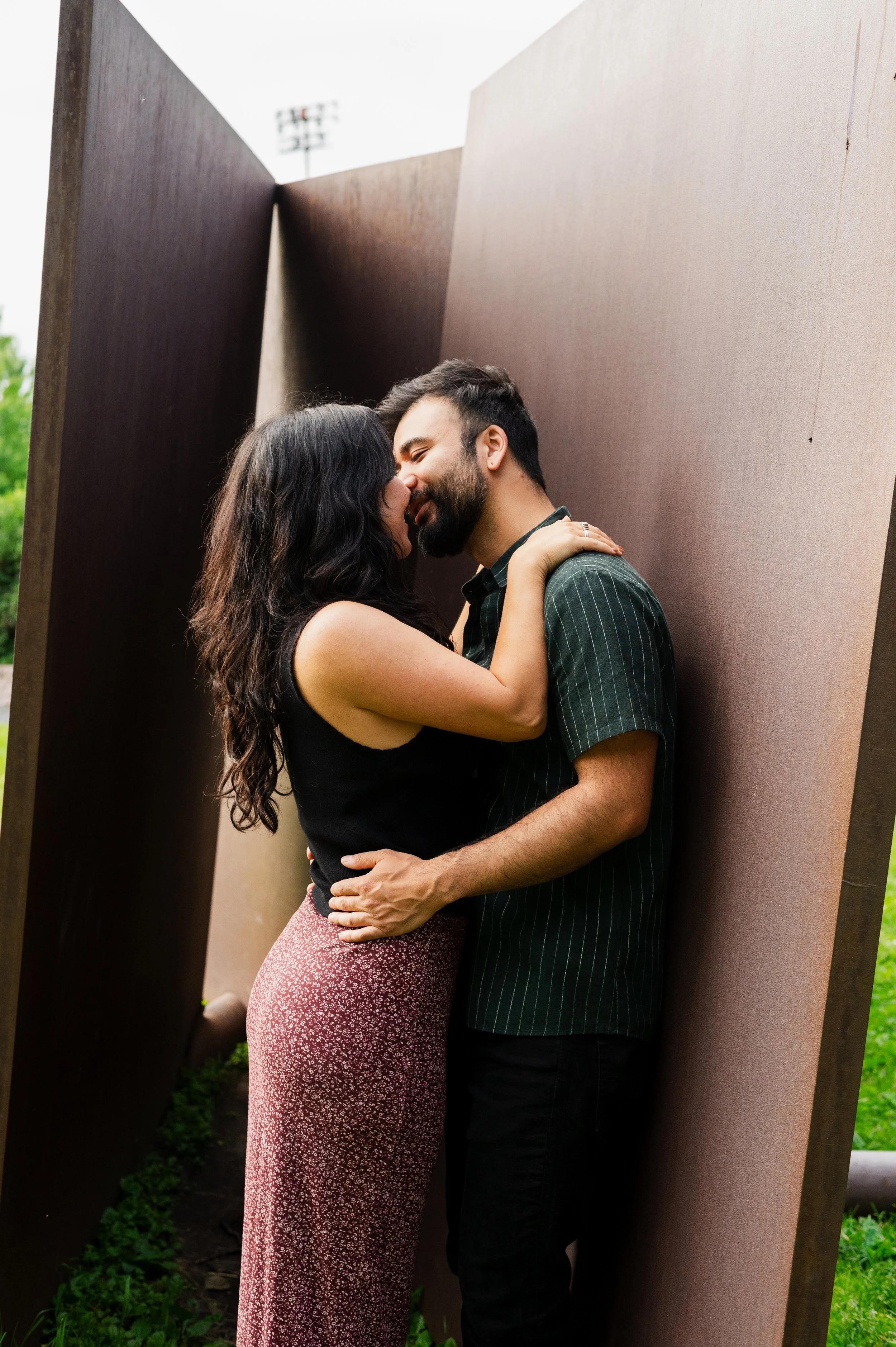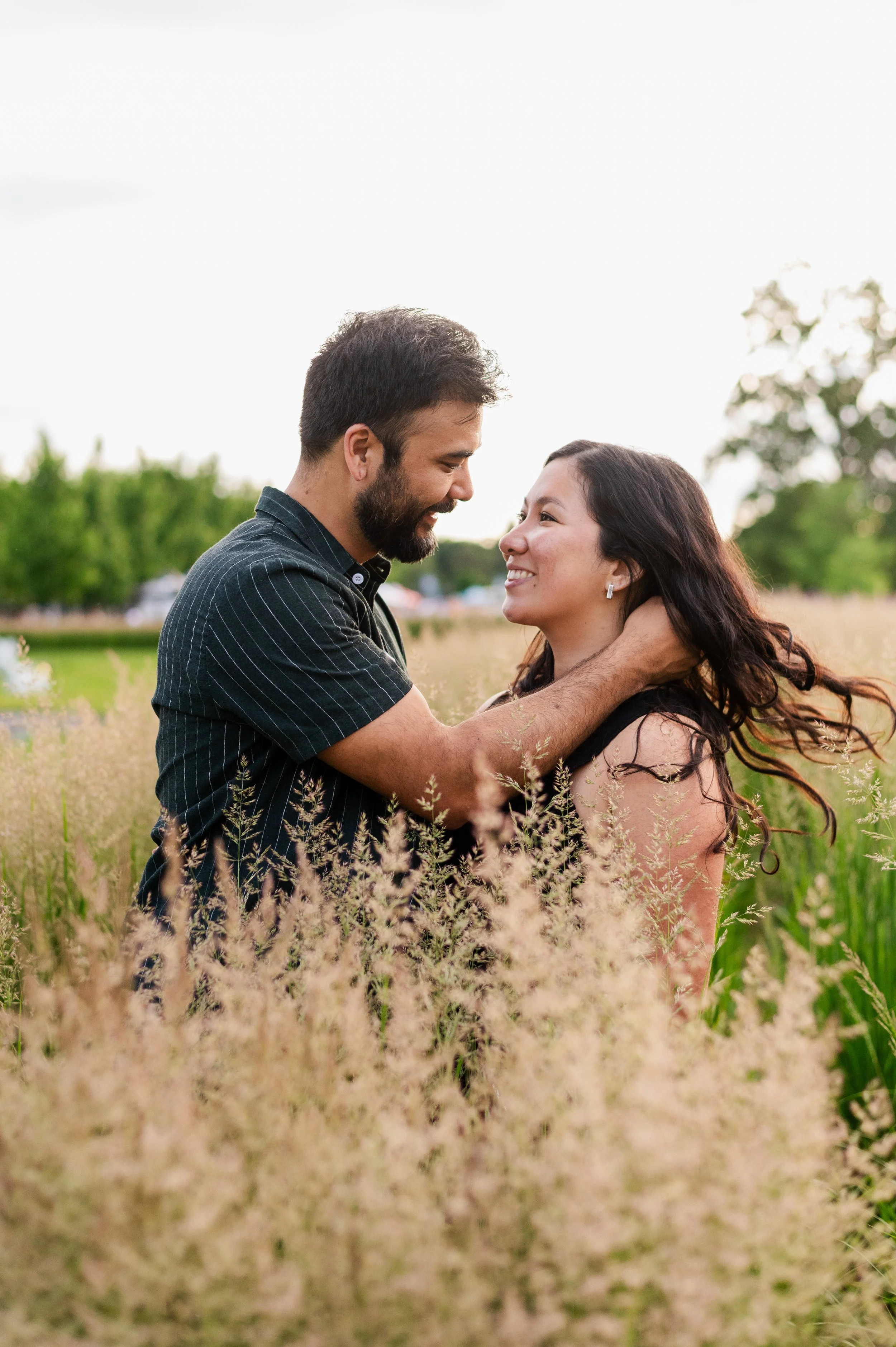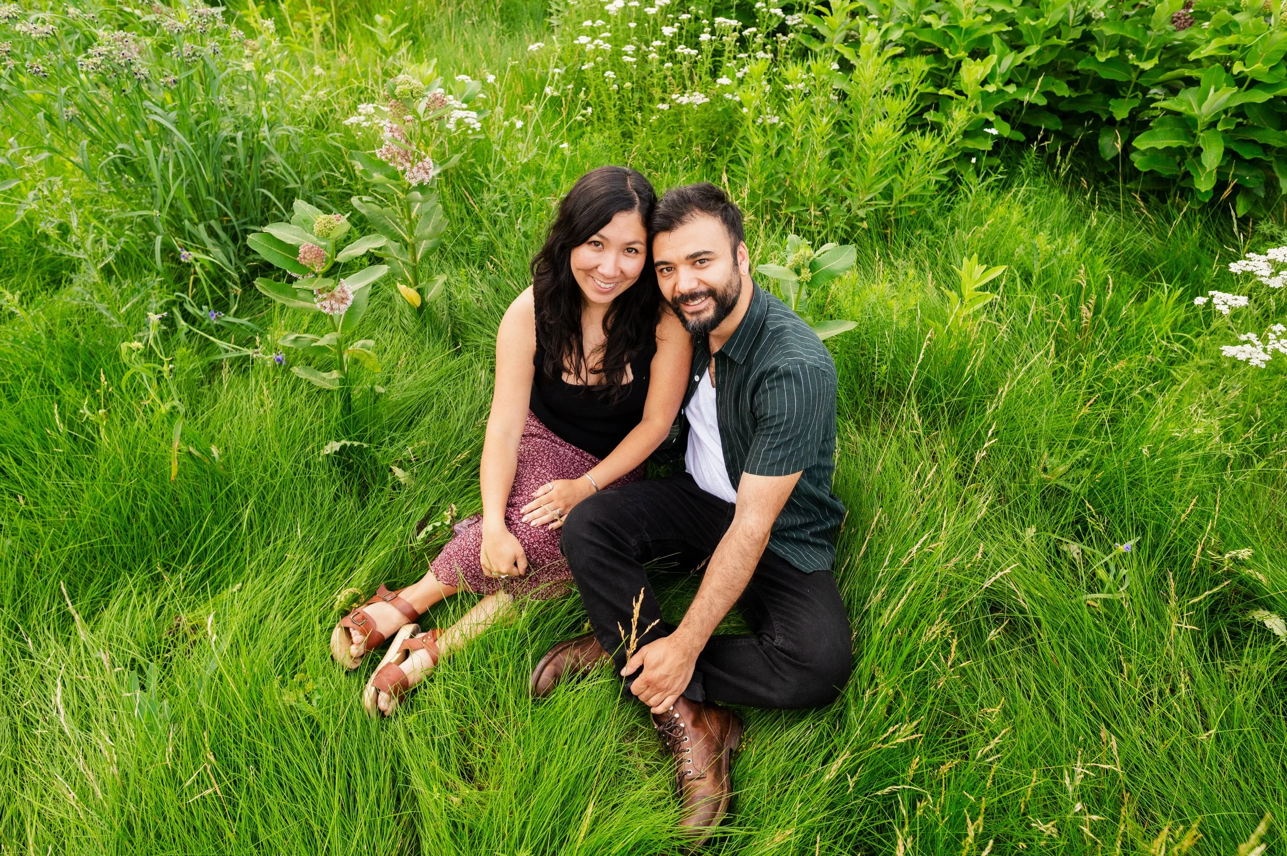 When I was planning Sonia and Peter’s engagement session with them, the initial plan was to do some fly fishing at a creek they frequent. We were so excited for this, however, the summer weather in Minnesota is fickle. After some inclement weather delays, we decided to turn our sights to the Minneapolis Sculpture Garden at the Walker Art Center. Still, rain thwarted us time and time again, delaying us to the point we doubted we were going to get a sunny session, but luck was with us! It just so happened to be the same day as Pride too! The gardens were full of people smiling, music filling the air. The sky threatened us with moody clouds, but the rain held off for the entire session. The lighting was phenomenal and I had so much fun taking these; this location just lends so much to the creative juices. Sonia and Peter also did wonderfully in front of the camera.