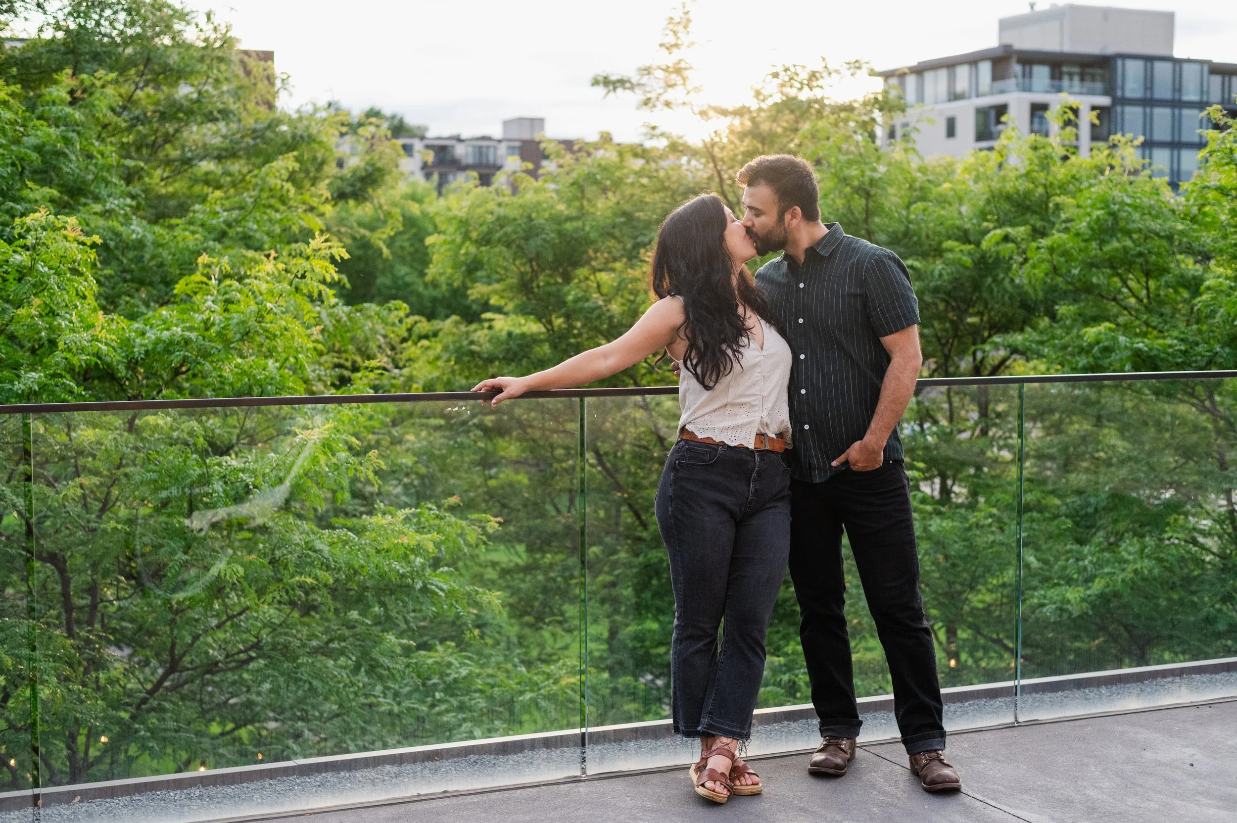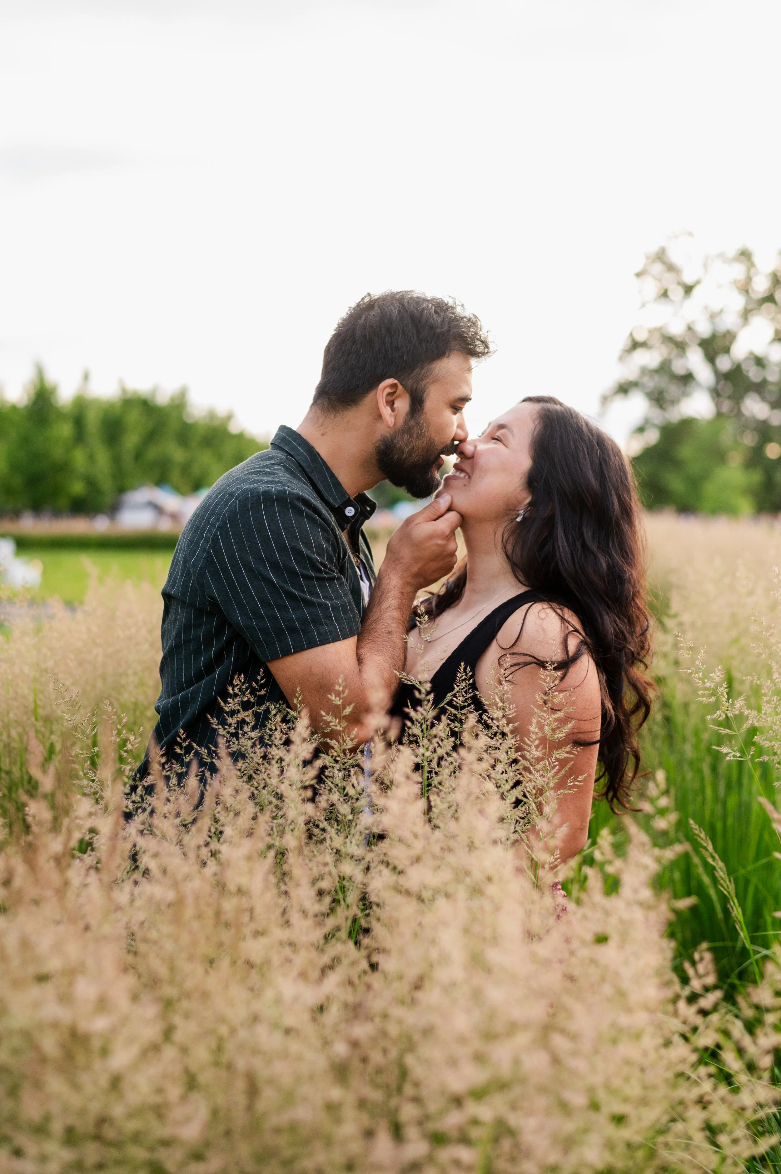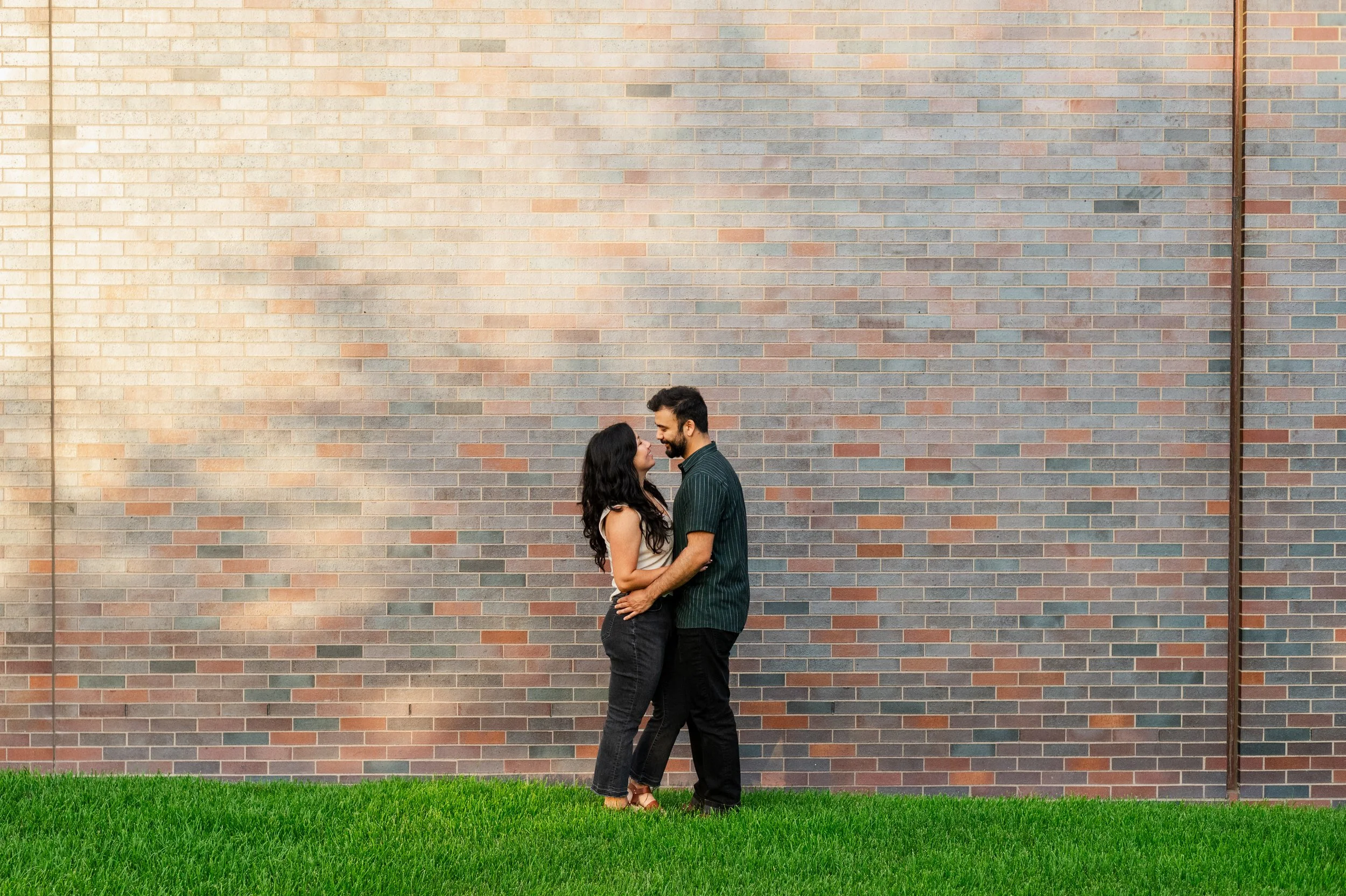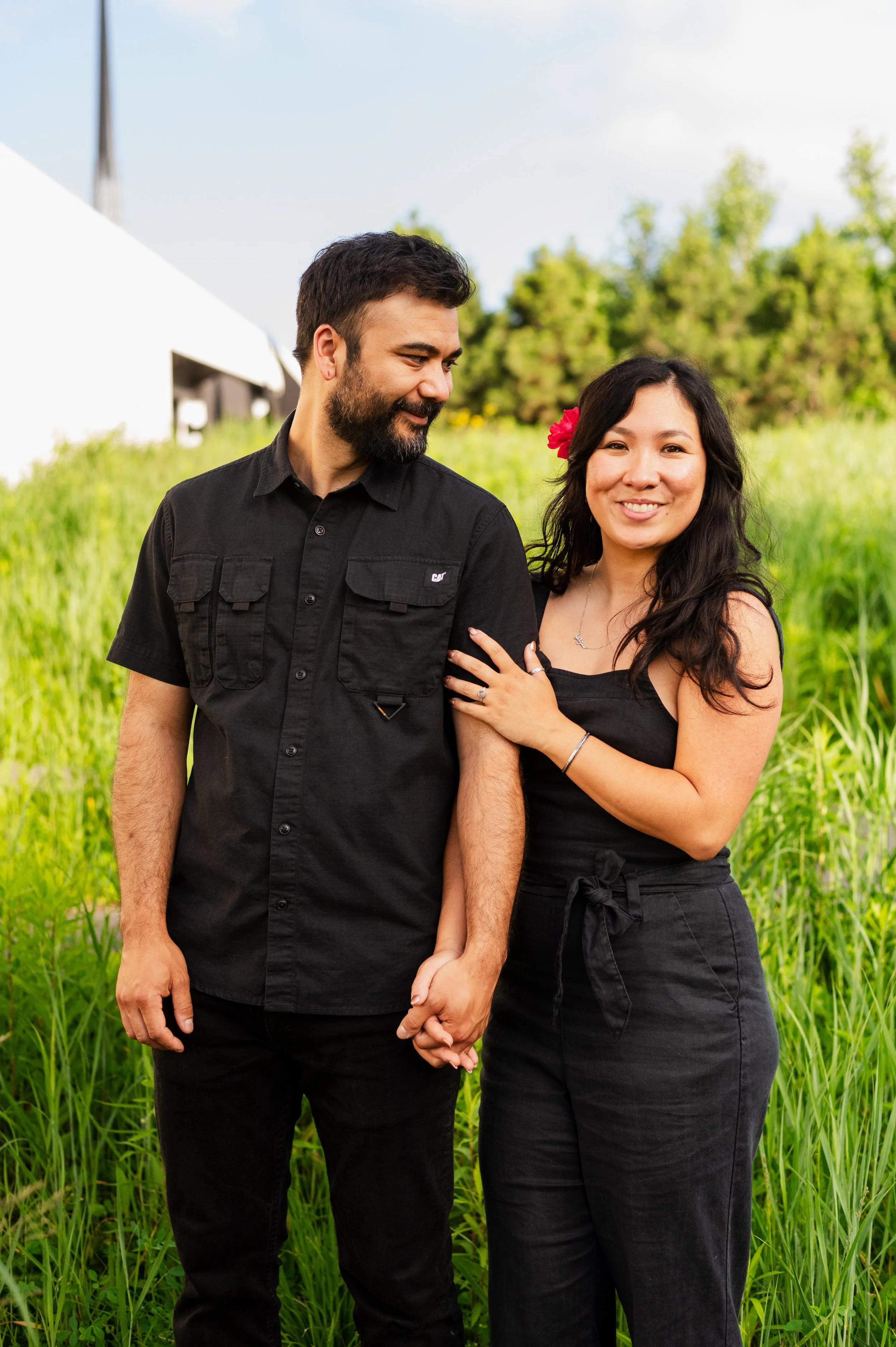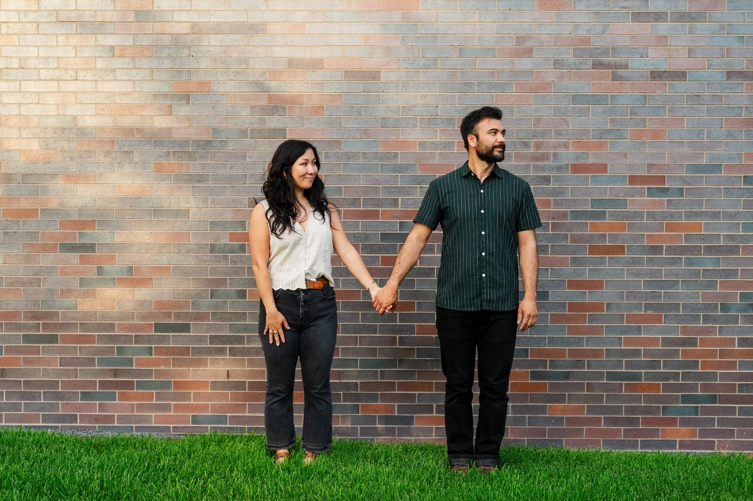 When I was planning Sonia and Peter’s engagement session with them, the initial plan was to do some fly fishing at a creek they frequent. We were so excited for this, however, the summer weather in Minnesota is fickle. After some inclement weather delays, we decided to turn our sights to the Minneapolis Sculpture Garden at the Walker Art Center. Still, rain thwarted us time and time again, delaying us to the point we doubted we were going to get a sunny session, but luck was with us! It just so happened to be the same day as Pride too! The gardens were full of people smiling, music filling the air. The sky threatened us with moody clouds, but the rain held off for the entire session. The lighting was phenomenal and I had so much fun taking these; this location just lends so much to the creative juices. Sonia and Peter also did wonderfully in front of the camera.