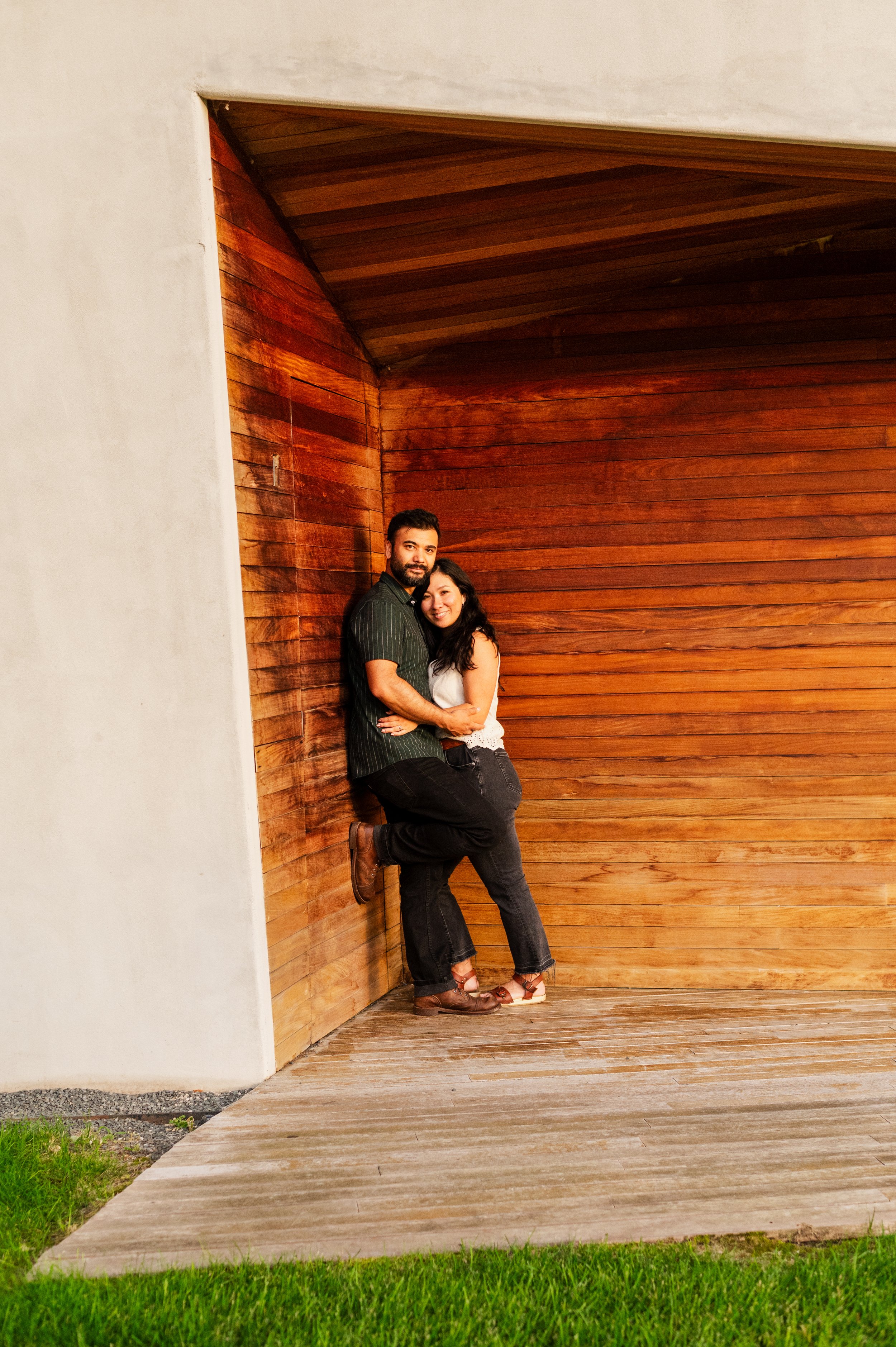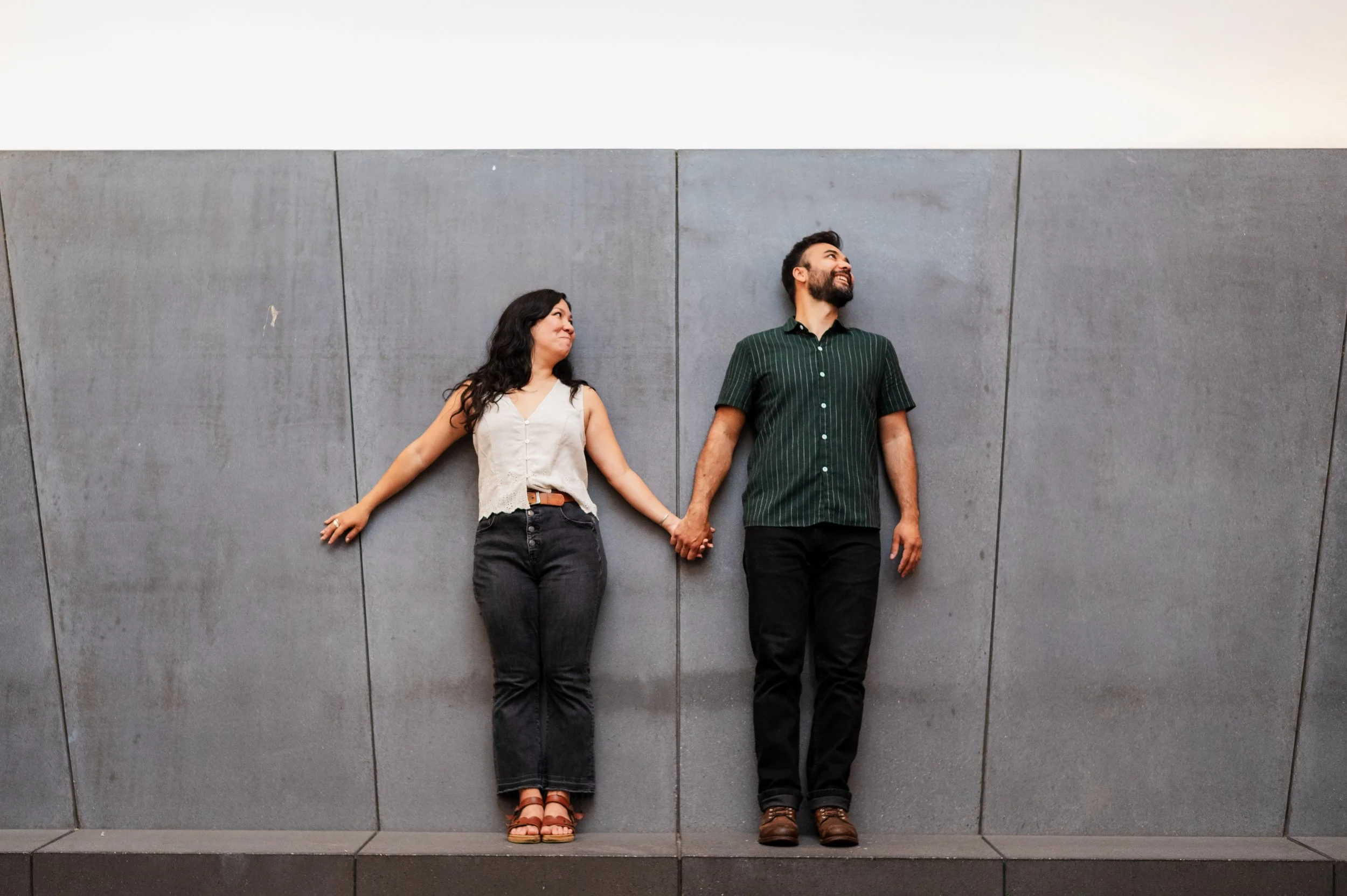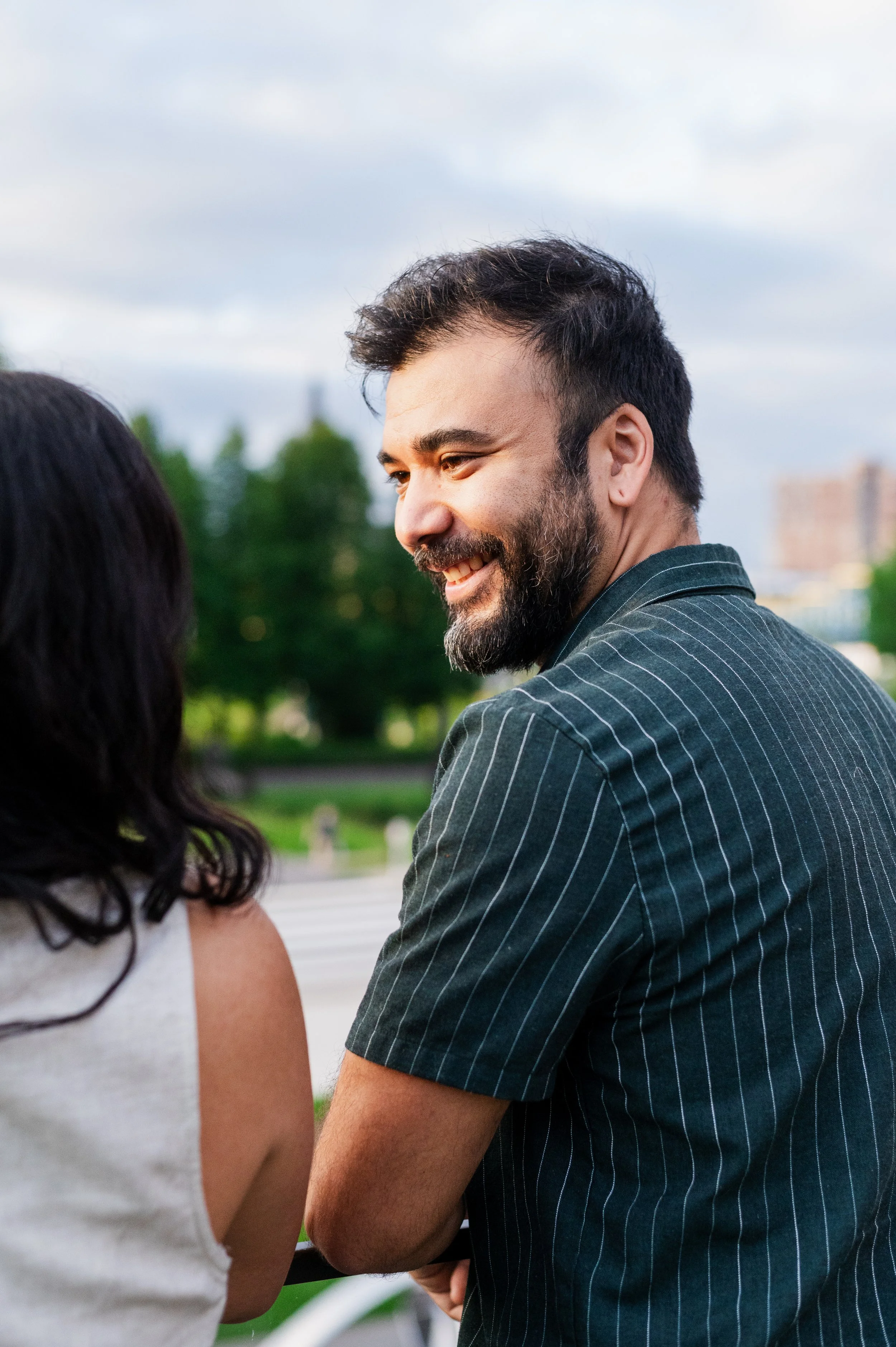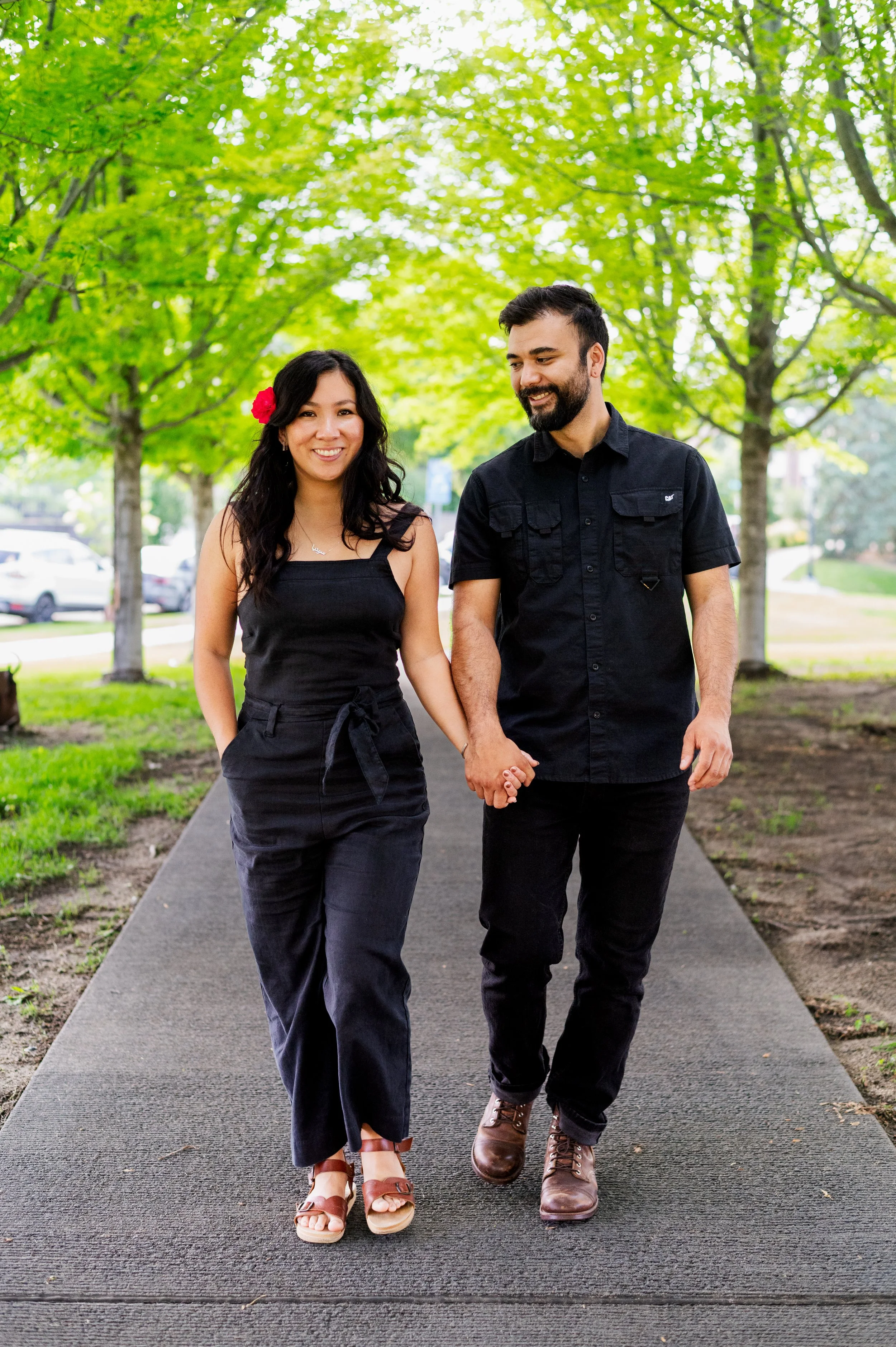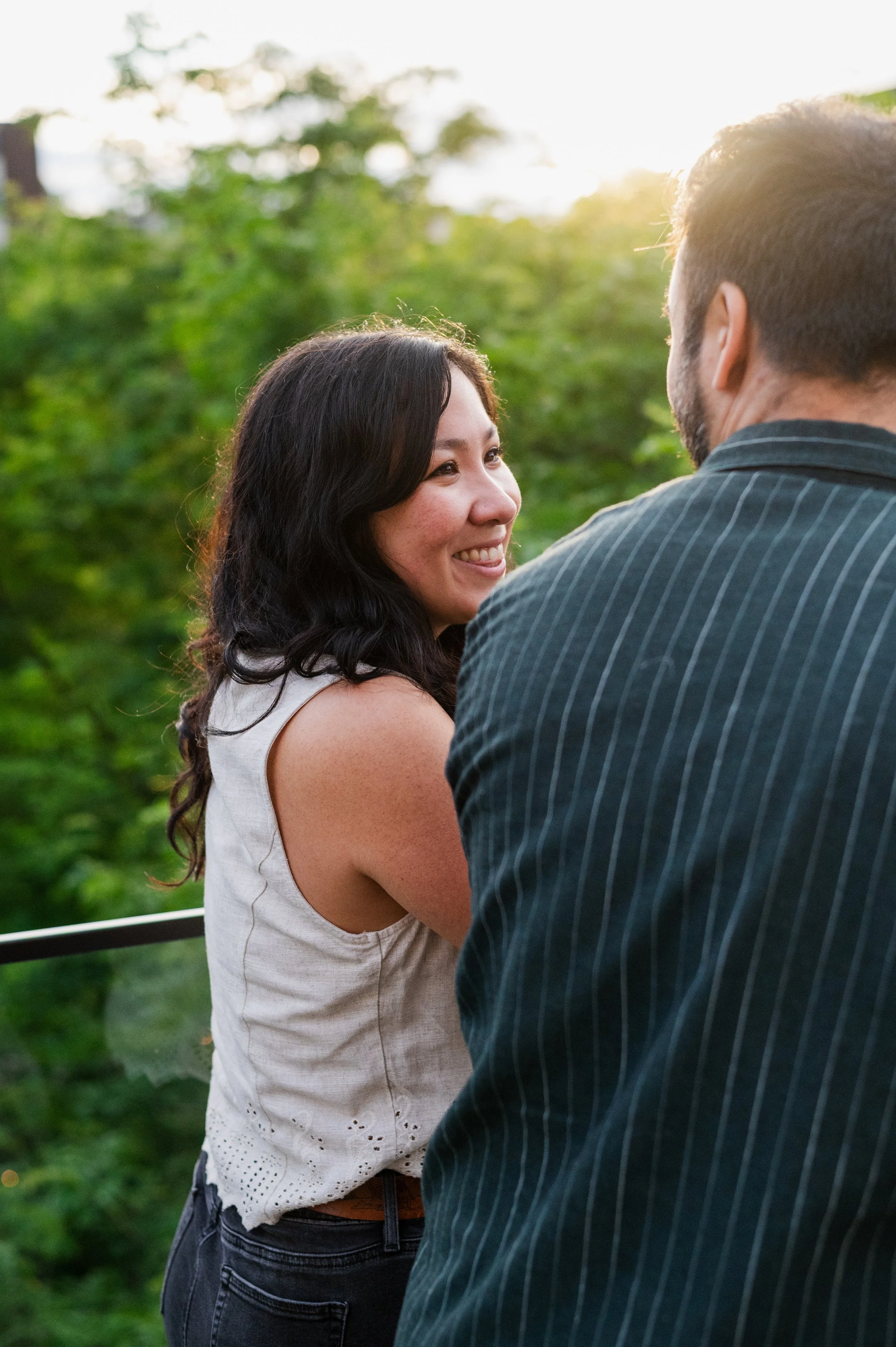When I was planning Sonia and Peter’s engagement session with them, the initial plan was to do some fly fishing at a creek they frequent. We were so excited for this, however, the summer weather in Minnesota is fickle. After some inclement weather delays, we decided to turn our sights to the Minneapolis Sculpture Garden at the Walker Art Center. Still, rain thwarted us time and time again, delaying us to the point we doubted we were going to get a sunny session, but luck was with us! It just so happened to be the same day as Pride too! The gardens were full of people smiling, music filling the air. The sky threatened us with moody clouds, but the rain held off for the entire session. The lighting was phenomenal and I had so much fun taking these; this location just lends so much to the creative juices. Sonia and Peter also did wonderfully in front of the camera.